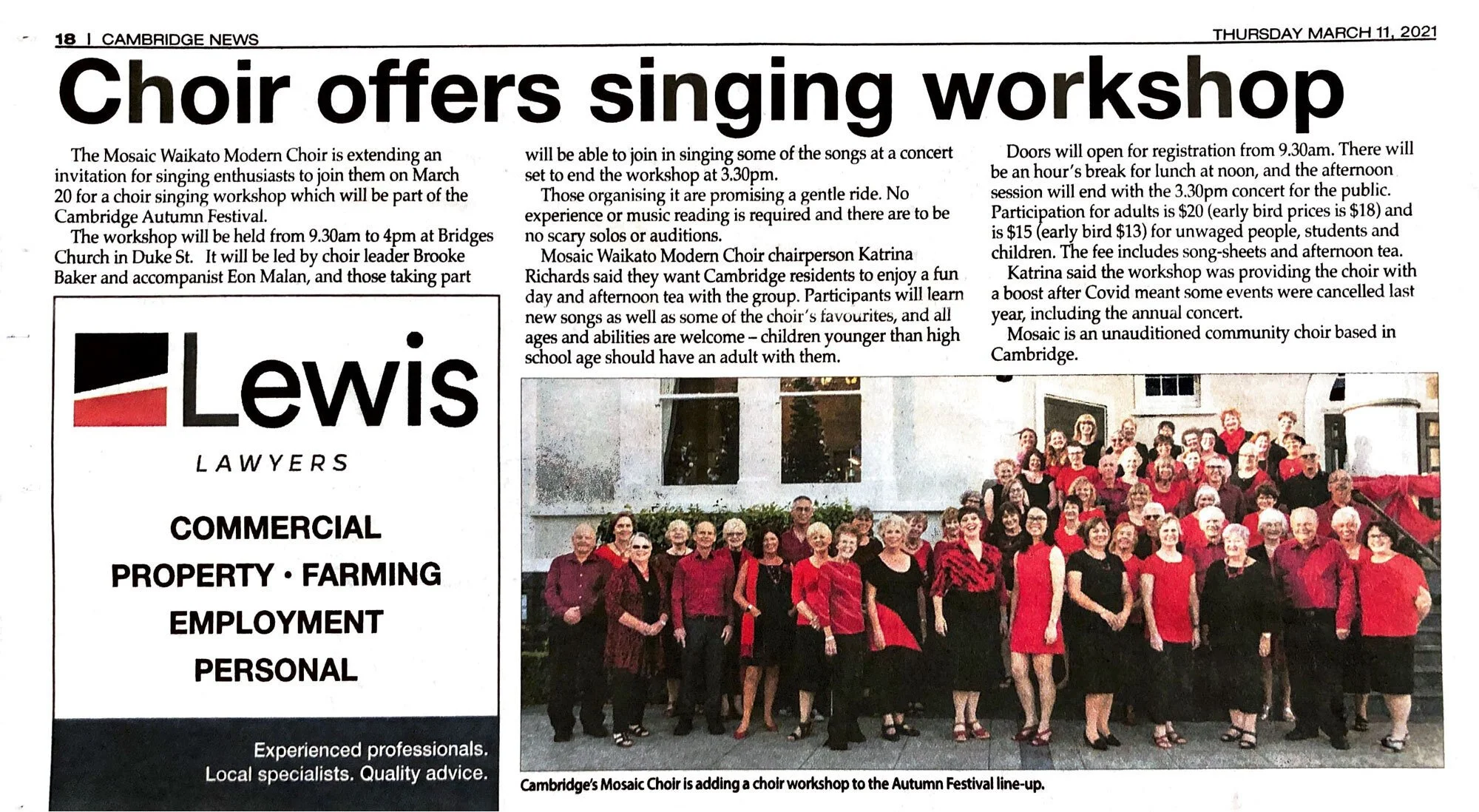 Choir Singing Workshop in Cambridge 11 Mar Written By Eon Malan Cambridge News, 11 March 2021 Eon Malan https://eonmalan.com/