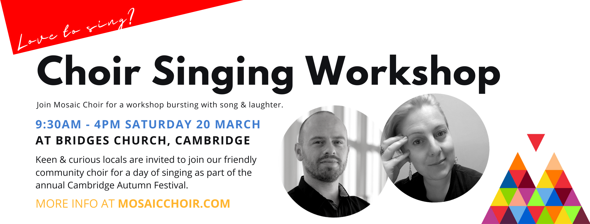 “MOSAIC is an unauditioned community choir based in Cambridge, New Zealand. Our group is made up of regular individuals with a wide range of ages, cultures, occupations and interests with one thing common; we all absolutely love to sing!